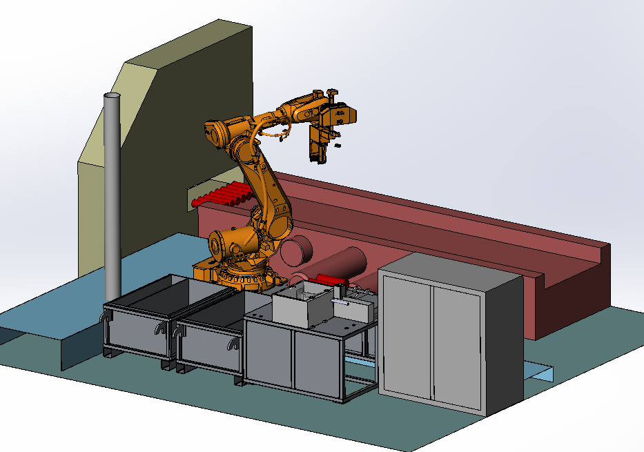 棒材在线取样机器人由机器人、抓手装置、视觉系统、存放装置、贴标装置、电气系统、安全防护系统等组成。整个系统以PLC控制系统为中心,通过数据通讯及信号交接与控制,将各模块之间有机的结合在一起,完成机器人自动取样功能。