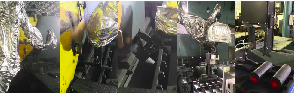 2020年9月23日,由中国钢研科技集团金自天正上海子公司自主研发的棒材在线智能取样机器人,在中特集团兴澄特钢公司一轧钢分厂CP5生产线顺利投运,成功实现无人化样件在线取样、搬运、贴标及摆放,减少人工操作、降低劳动强度、降低安全事故,实现取样流程无人化。