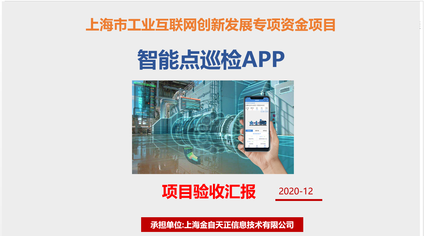 上海金自天正信息技术有限公司软件产品事业部承担的上海市工业互联网创新发展专项资金项目《智能点巡检APP》,已于近日顺利通过相关部门验收。